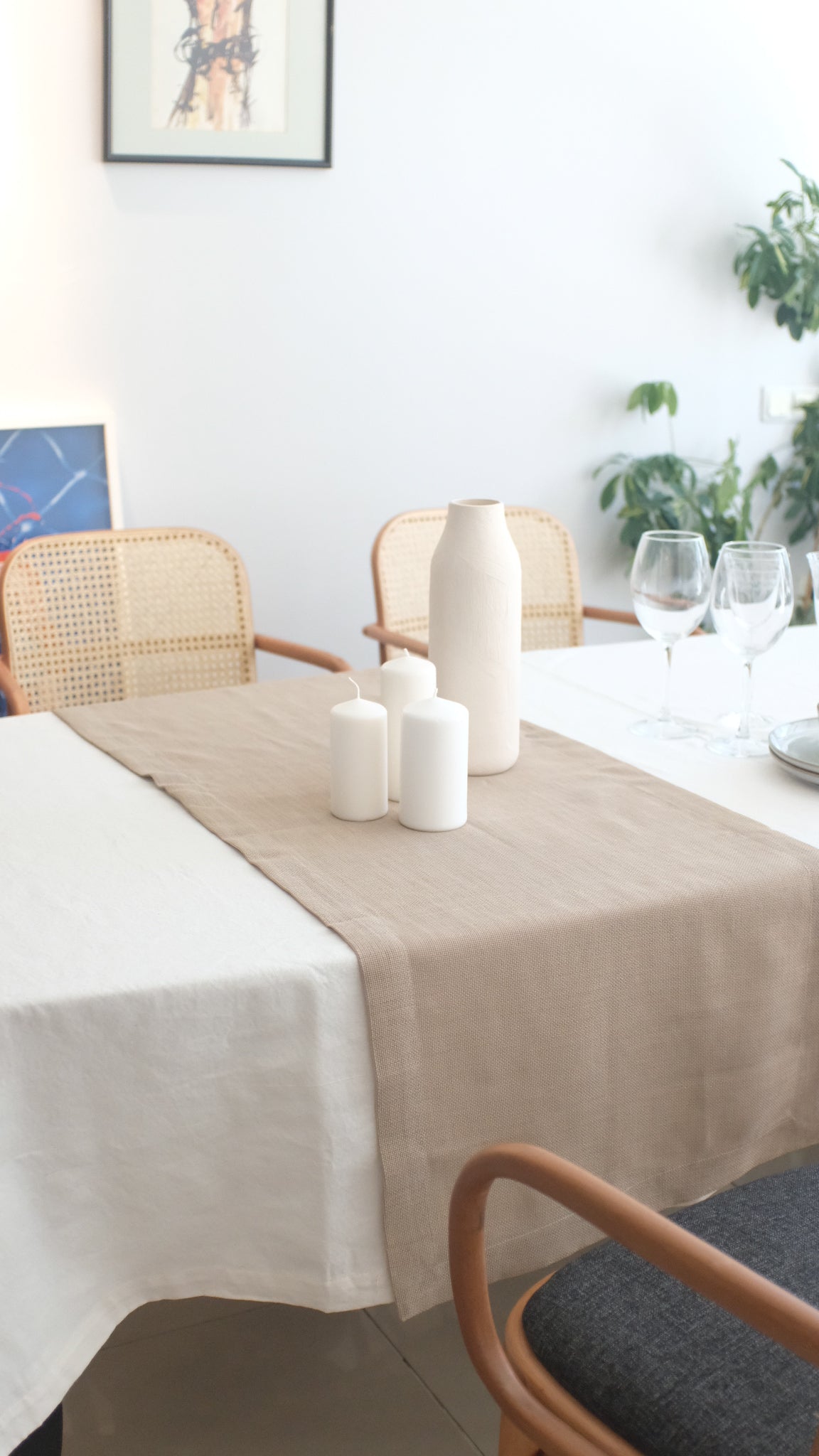 - Choose the linen tablecloth that suits your table dimensions.