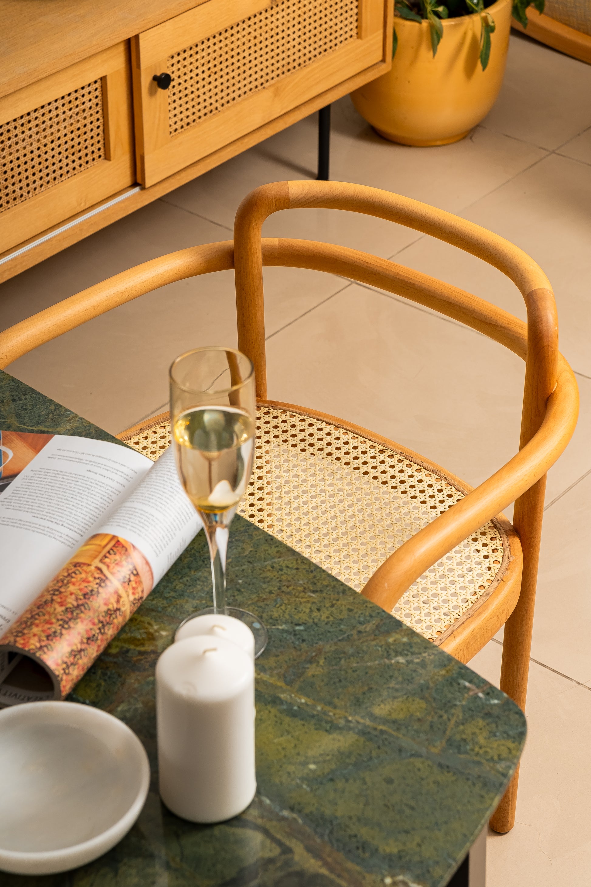 Soft lines, balance of form and function, meticulously crafted in solid wood and june
